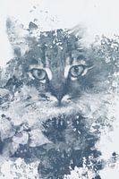 Poes / Kater / Kat - digitale illustratie in grijs blauwe kleur.