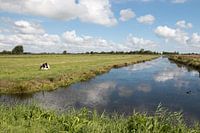 polder landschap met een rustende koe en stapelwolken
