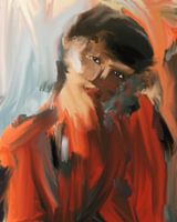 Portret van een Aziatische vrouw in het rood. Gemengde techniek. Fotografie gecombineerd met olieverf en digitaal bewerkt.