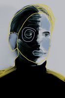 Abstract portret in zwart-wit, geel en blauw. Combinatie van fotografie en digitale illustratie.