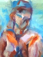 Portret vrouw in de stijl van cobra art. Levendige kleuren, van het expressionisme. Cobra is figuratief, maar toch bijna abstract. Ik voel mij een post Cobra kunstenaar. Het is moderne kunst, contemporary art.