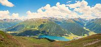 prachtig uitzicht vanaf de Parsenn bergkam naar het meer en toeristenoord Davos, Zwitserse Alpen. blauwe lucht met wolken