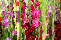 Prachtige Gladiolen bloemstuk met heldere kleuren.