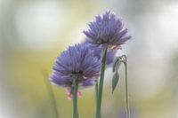 close up van de bloemetjes van de bieslook plant, met een zachte groene bokeh achtergrond