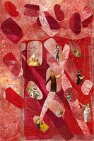 Noem het mixed media, noem het collages: wat ik maak is wat het werk zelf vraagt. Soms veel afbeeldingen, soms getekende en ingekleurde motieven, soms een achtergrond van aquarel, soms van gelli prints, soms met gebruik van sjablonen, soms met tekst. Soms is een kleur het uitgangspunt, soms een bepaalde afbeelding, dan weer een tekst, een verhaal of gewoon een behoefte aan het inkleuren van motieven of zelfs het hanteren van naald en draad. Hoe divers ook, mijn werk heeft…
