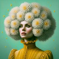De witte bloemen maken het geheel wat surrealistisch, maar dit portret van deze vrouw laat zien dat je ook met een hoofd vol een rustige uitstraling kan hebben.
