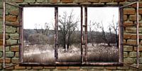 Herfst in de uiterwaarden, raam uitzicht, riet, boom, bomen, de herfst, de herfst kleuren, bruin, uiterwaarden, Herbstimpression, sfeer, oude venster, Neder-Inn Europees Reserve, baksteen, Zieglwand, Raam, Seasons