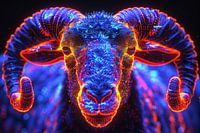 Dommel weg in een droomwereld met deze glimmende ram tegen een donkere achtergrond. Perfect voor aan de muur van je slaapkamer of kantoor.