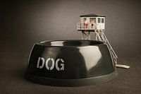 Deze honden drinkbak wordt ineens een groot bassin waarin je kunt verdrinken. Gelukkig is de reddingsdienst dichtbij.