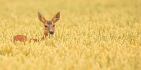 Deze jonge ree in het graan denkt dat hij onzichtbaar is.