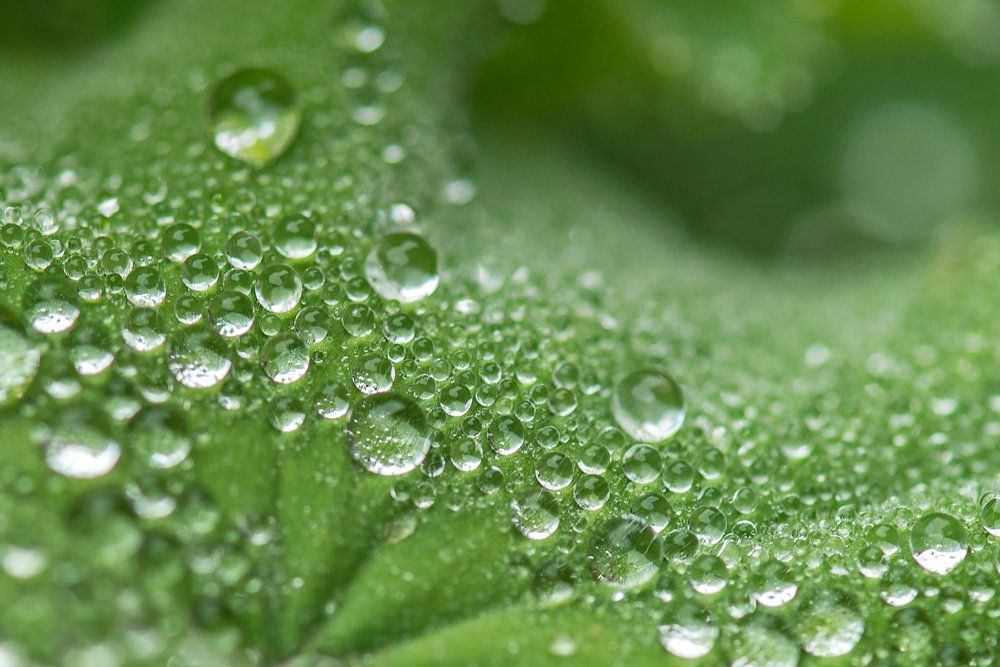 heel veel regendruppels blijven na een regenbui liggen op het behaarde blad van vrouwenmantel. ik hou wel van vrouwenmantel, het is een sterke plant, doet het altijd, zijn geelgroene pluimen staan mooi in allerlei boeketten en na regen krijg je zulke prachtige plaatjes