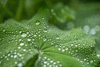 heel veel regendruppels blijven na een regenbui liggen op het behaarde blad van vrouwenmantel. ik hou wel van vrouwenmantel, het is een sterke plant, doet het altijd, zijn geelgroene pluimen staan mooi in allerlei boeketten en na regen krijg je zulke prachtige plaatjes