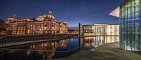 Zonsondergang boven Berlijn (Duitsland). Gezicht op Reichstag en Bundestag gebouw.