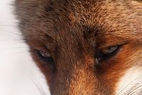 Close encounter met een vos is een prachtige ervaring. Reintje denkt er het zijne van. In gedachten verzonken heeft deze vos helemaal geen aandacht voor de fotograaf. De foto is hartje winter genomen bij temperaturen ver onder het vriespunt en met een dikke laag sneeuw op de achtergrond. Daardoor is het een eenvoudig oranje-wit portret geworden.