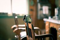 Dit retro kapsalon interieur is door fotograaf Bert-Jan de Wagenaar in een zogenaamde cinematic (filmische) manier vastgelegd. Door de kleine scherptediepte, de color grade (op elkaar afstemmen van de kleuren) en de subtiele grain (filmkorrel) lijkt deze plaat zo uit een oude film te zijn geknipt. Wie neemt er zo plaats in de stoel?