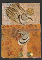 abstracte collage van afbeeldingen op gelliprint, stof en moerbeipapier