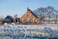 Rijp op de berenklauw naast de boerderij