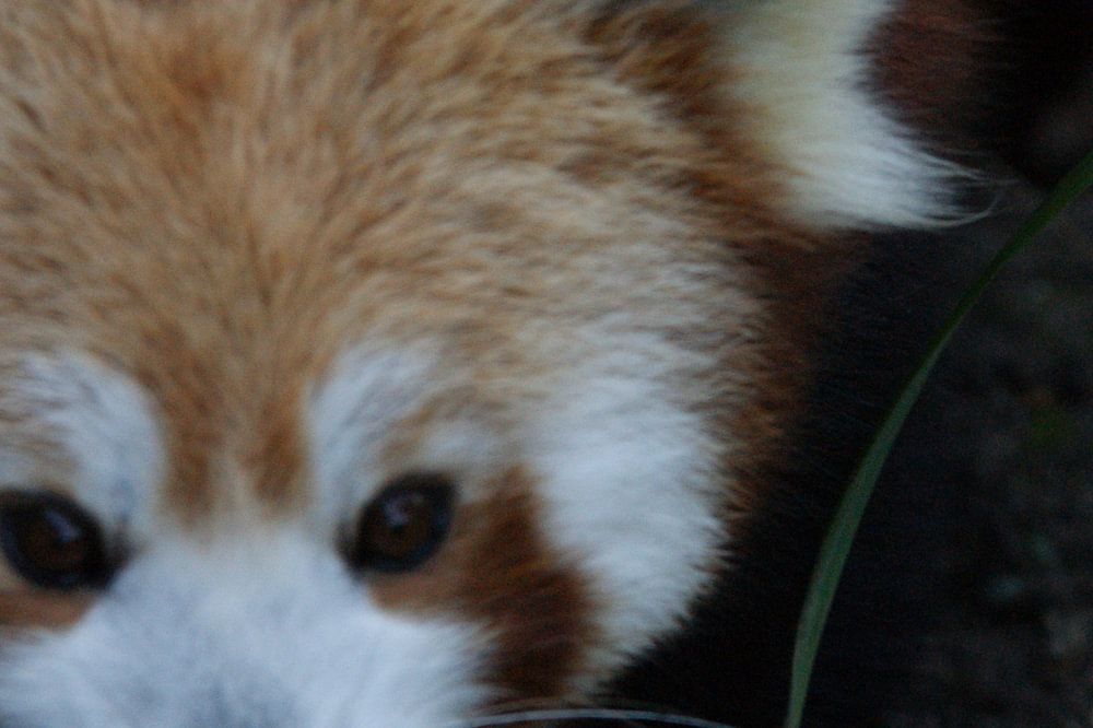 rode panda die de lens ontdekt van de en denkt weg wezen