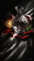 Deze combinatie van rauwe ingrediënten met elegante details maakt de afbeelding zowel stoer als stijlvol – een stilleven met karakter.