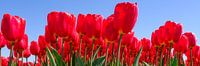 rode tulpen in panorama met een blauwe lucht