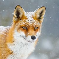 een rode vos in een sneeuwstorm