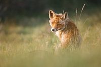 Een prachtige vos in het mooie avondlicht aan het einde van een lentedag.