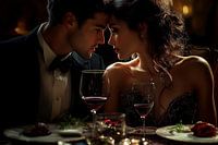 fictief grafisch romantisch beeld van een koppel in een restaurant tijdens het diner