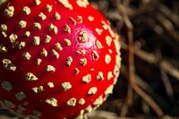 in de ochtendzon prachtige kleuren van de vliegenzwam tijdens een boswandeling