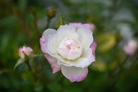 macro van wit roosje met lichtroze accenten van bovenaf genomen