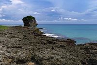 Taiwan heeft een prachtige kustlijn. Ook deze. rotsig strand en een blauwe zee. deze foto is genomen helemaal ten zuiden van Taiwan