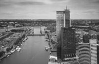 Skyline van Rotterdam met het Noordereiland en de Hef vanaf de Rotterdam