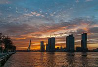 zonsopkomst rotterdam- Wilhelminakade Rotterdam met erasmusbrug. Zicht op Manhattan aan de maas