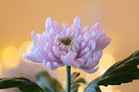 close up van een lichtroze chrysant met een zachte bokeh achtergrond