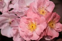 macro opname van kleine klimroosjes met verschillende tinten roze en geel hartje