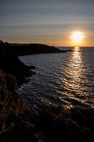 foto van de ruige kust van Frankrijk dichtbij Cancale tijdens zonsondergang in het zommer.