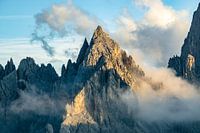 ruige bergtoppen in de Dolomieten in het avondlicht