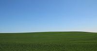 Een prachtig minimalistisch landschap. Alleen het groen en blauw van de lucht, Niets en niemand te zien. (Voor mij) een fantastische plek. Voor jouw ook? hang hem dan aan jouw muur !