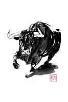 SUMI-E is een Japanse techniek die in de 6e eeuw van de Chinezen werd geleend. Het is een wassing die wordt verkregen door verdunde Oost-Indische inkt op papier aan te brengen.