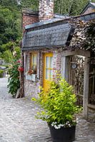 Mooie rustieke huis met gele deur in Durbuy, Belgie.