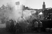 ´s Avonds bij een eettentje op het Djemaa el Fna plein in Marrakech, Marokko. De rook van de grill zorgt voor een mystieke sfeer in deze sprookjesachtige omgeving.