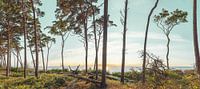 Uitzicht door het Darß bos, naar het strand. Avondsfeer op het weststrand, Oostzee.