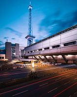 Lange belichting bij de Berlijnse radiotoren en het ICC Berlijn op het blauwe uur.