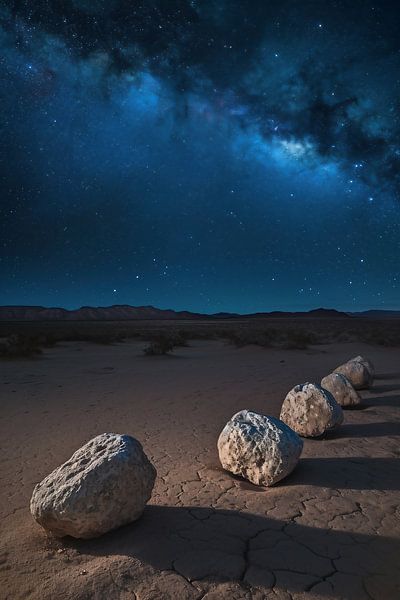 Koop dit landschapskunstwerk s Nachts in de woestijn van fernlichtsicht als print op canvas, aluminium dibond, (ingelijste) fotoprint, behang en ArtFrame. Voor jou op maat geprint in Fine-Art kwaliteit.