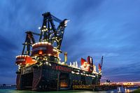 Vanwege de lange sluitertijd van 13 seconden is de rechter hijskraan niet scherp omdat deze werd gebruikt voor hijswerkzaamheden. De onscherpte die ontstond door het bewegen heb ik bewust vastgelegd voor deze foto.