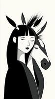 Een abstracte, zeer eenvoudige pen tekening van een vrouw met haar ezel, in zwart wit.