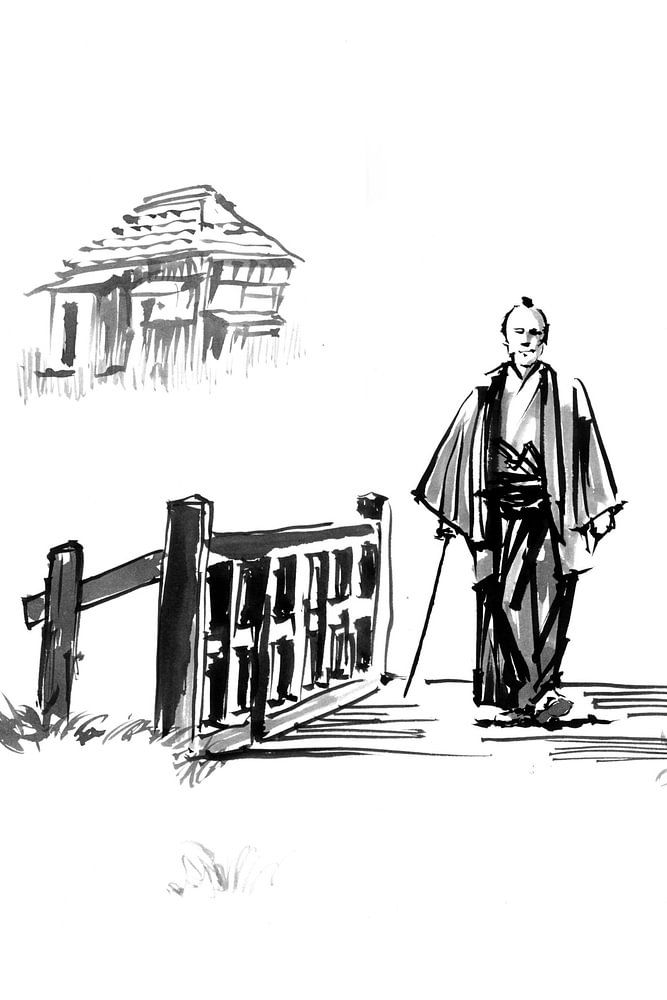 slapende witte kat in de boomPéchane Sumie samoerai van bovenafPéchane Sumie