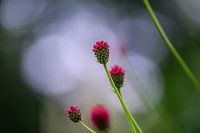 close up van de sanguisorba officinalis, ofwel grote Pimpernel, met een zachte grijs groene achtergrond