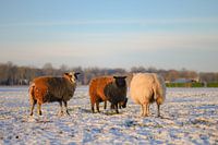 winters landschap in Buren, Gelderland, waar enkele schapen in het besneeuwde landschap staan, onder een blauwe hemel