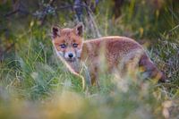 Een schattige jonge vos in het hoge gras