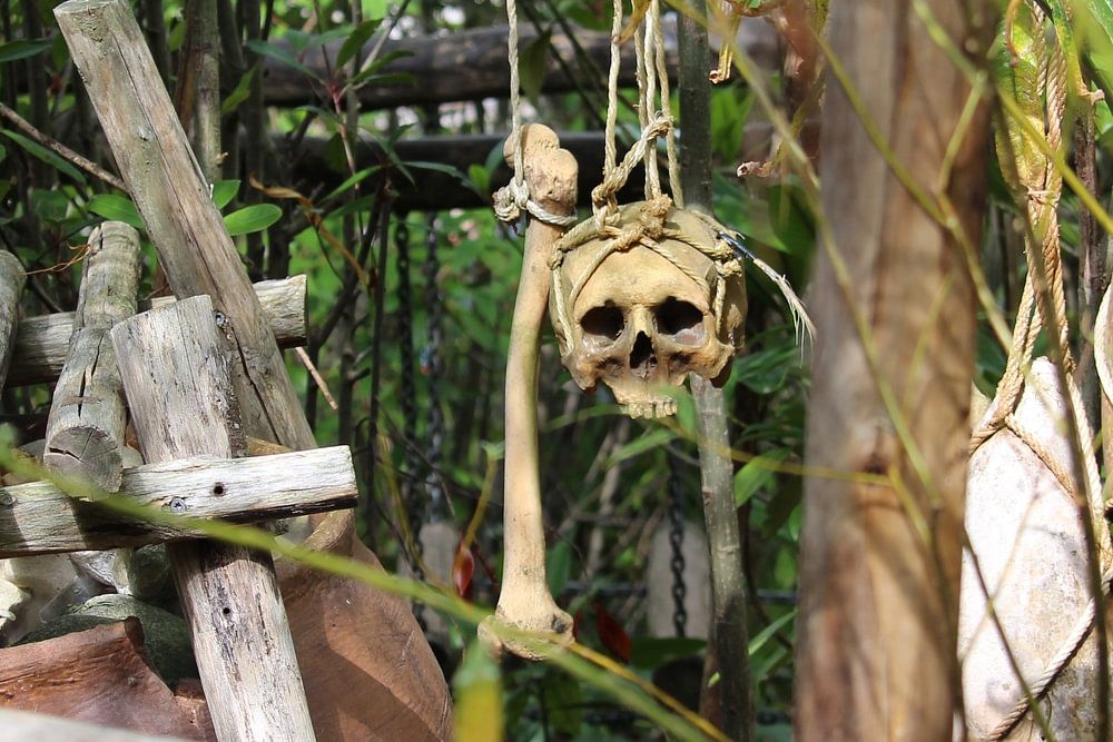 Deze foto heb ik gemaakt in een dierentuin. Het was ingericht als een piraten omgeving. De schedel met het bot trokken mij aan. Het is een verwilderde plek.